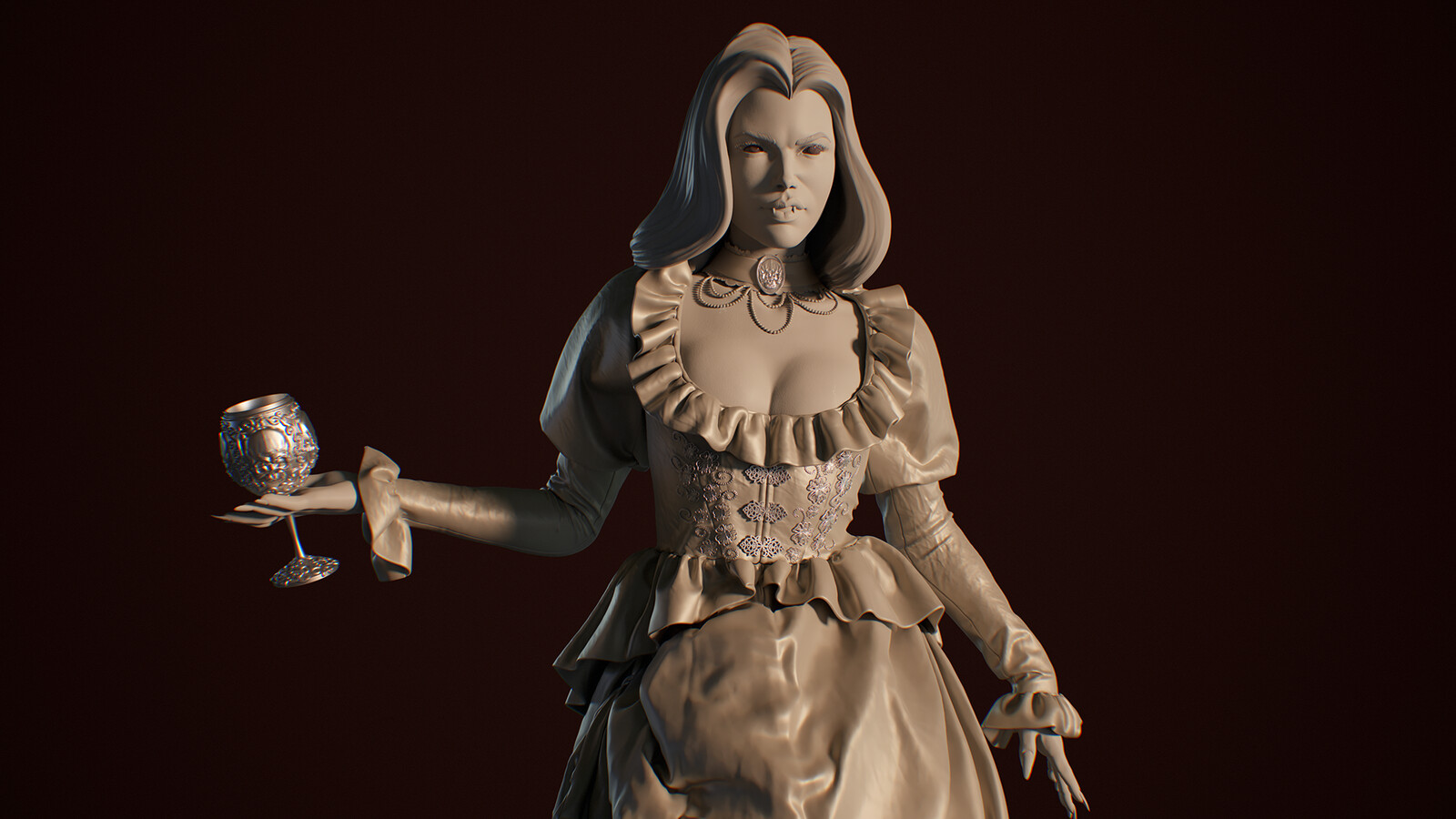 Vampire lady sculpt that will eventually be turned into a 3D Print. This is more so an exercise in trying to make an asset that can be printed easily.